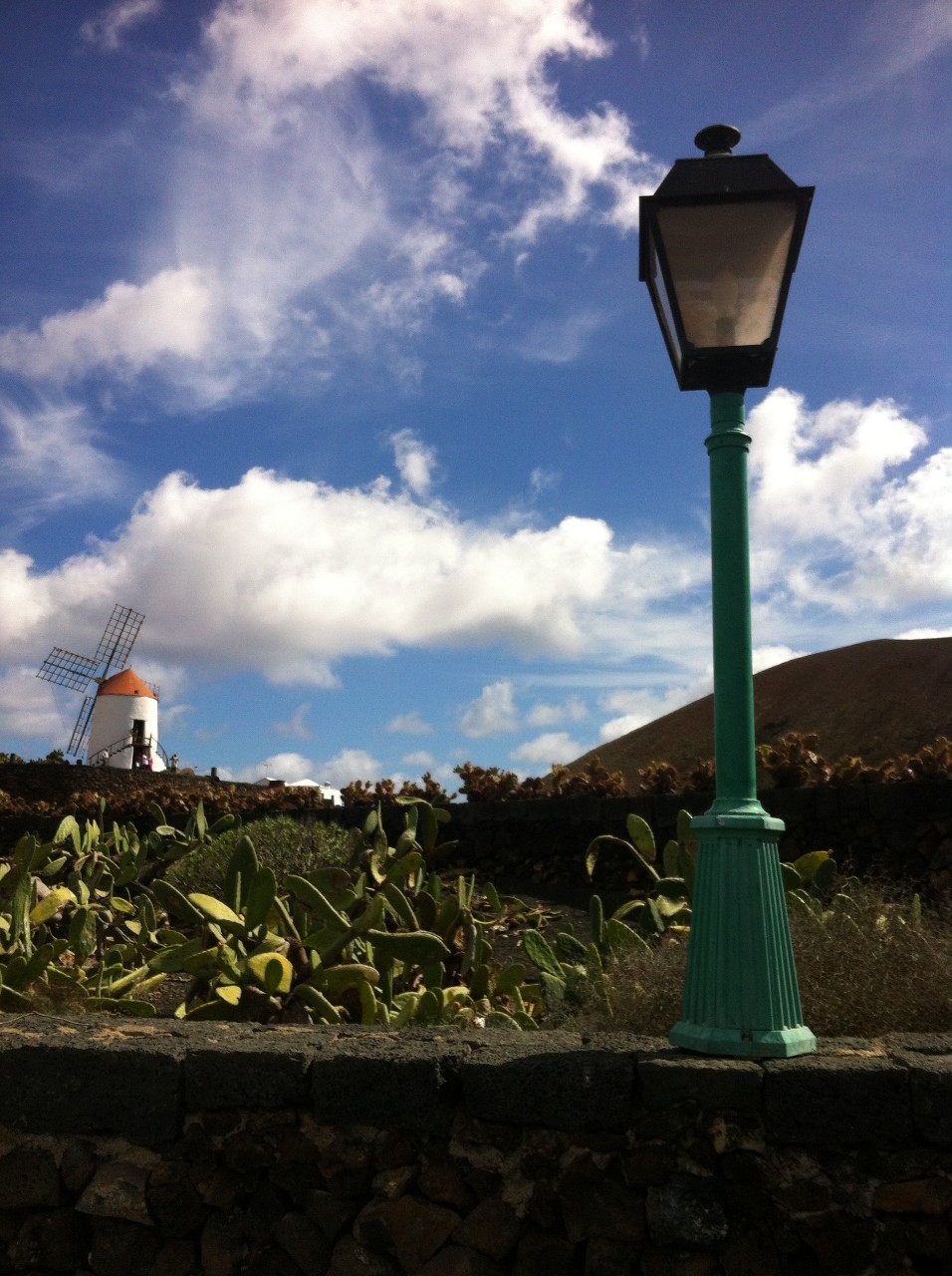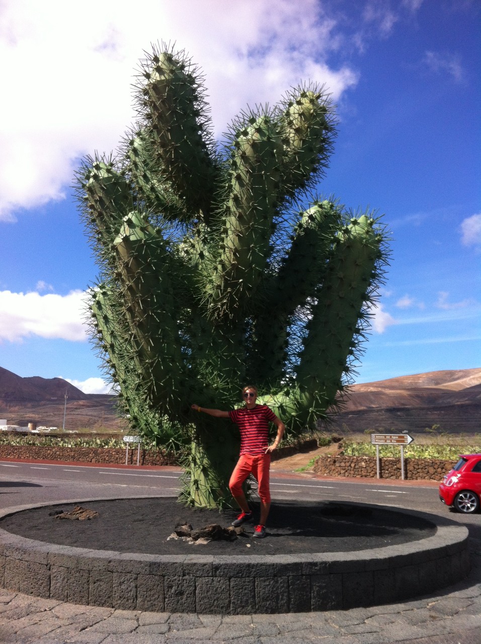 Ovšem tu nebylo zdaleka tak jednoduché najít, a tak jsme stopovali už více méně v centru města. „Kam máte namířeno?“ zavolala na nás po chvíli slečna, která stála na parkovišti. Naším cílem bylo Jameos del Agua, o čemž se později zmíním podrobněji. Ovšem ve světě stopování nejde všechno podle plánu. Důležitá je trpělivost a víra, a proto jsme byli vděční, že nás slečna zavezla alespoň o část naší vytyčené trasy dále, kde už bylo stopování mnohem jednodušší. Odtamtud jsme se několika auty dostali do Jardín de Cactus, což jsou turisty velmi navštěvované kaktusové zahrady. Ovšem vstupné nebylo levné, tak jsme se rozhodli udělat fotku jen s velkým kaktusem u vstupu a taktéž vyfotografovat zdejší mlýn a řítit se dál k našemu severnímu cíli.