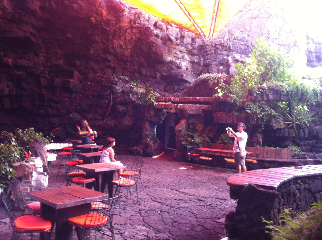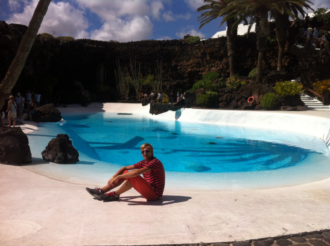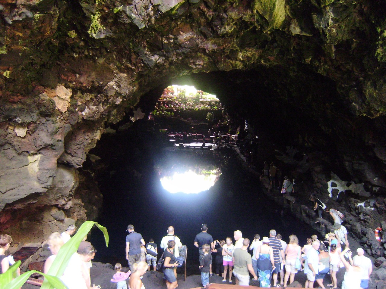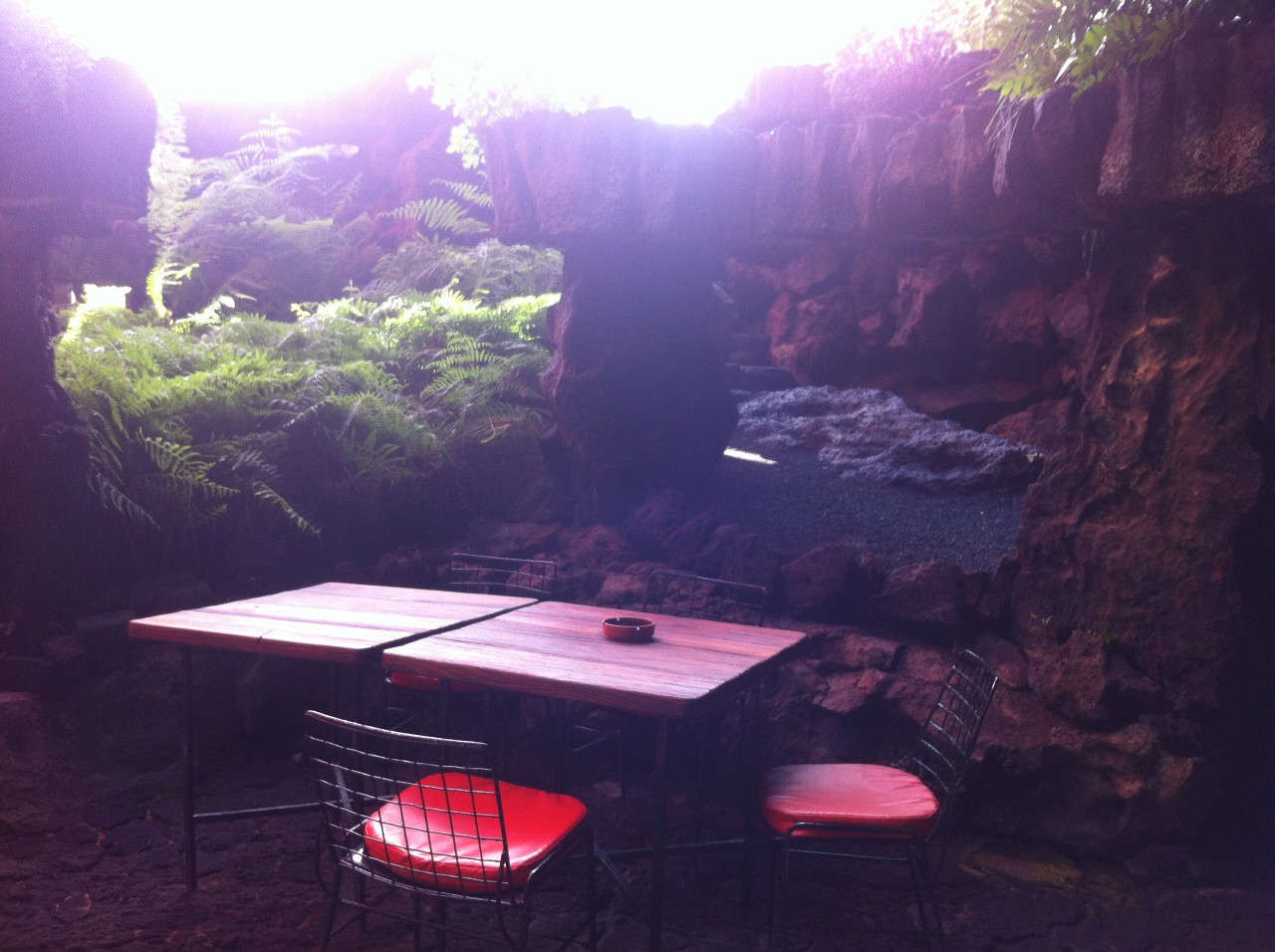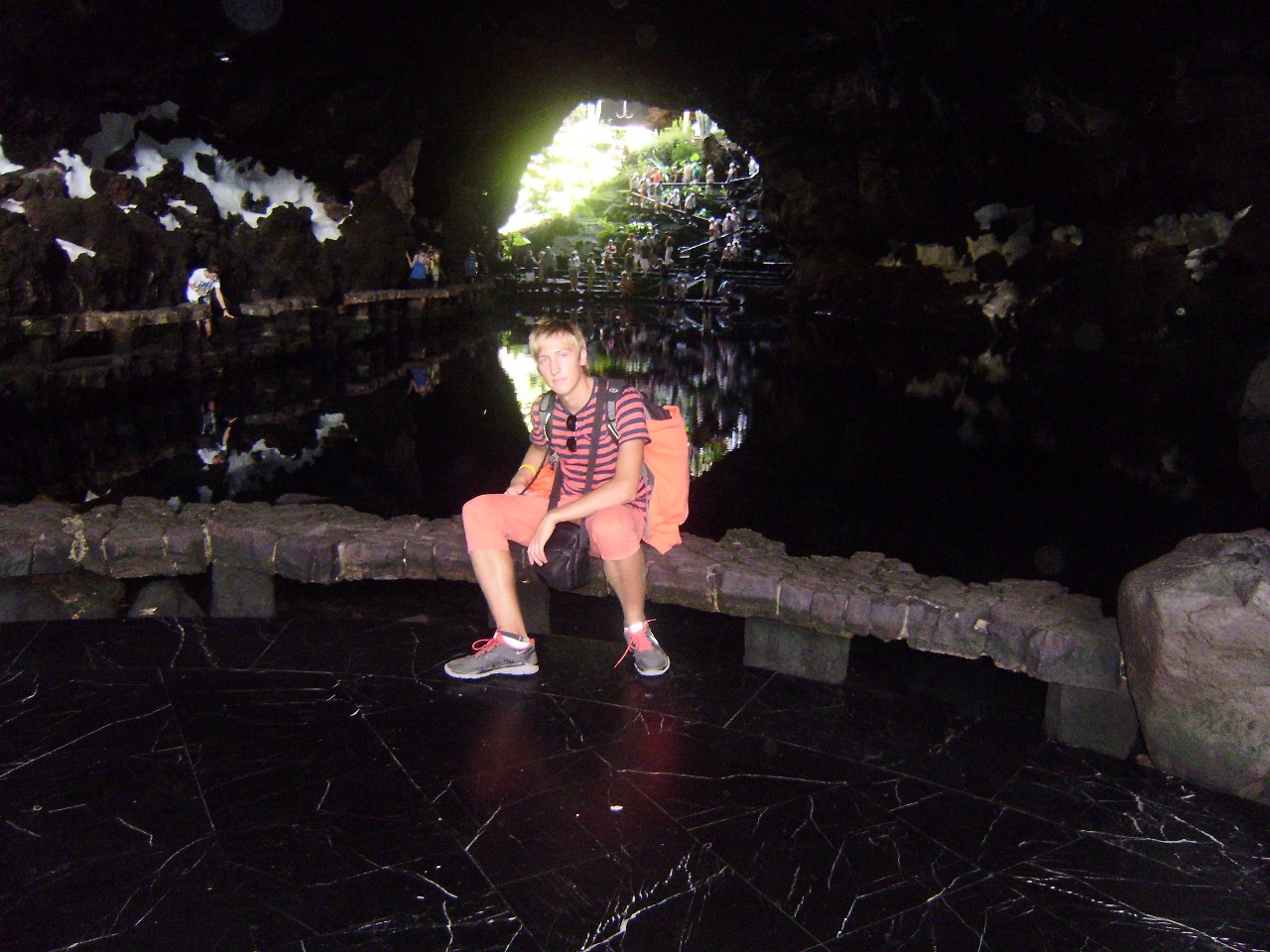 A zanedlouho se vskutku podařilo. Stačilo pár aut a byli jsme tam, kde jsme být chtěli. Přímo ke vstupu Jameos del Agua nás zavezl sympatický Angličan, žijící na kanárech už přes dvacet let. Britský přízvuk si však zachoval. Byl velmi příjemný a hezky jsme pohovořili. Navíc nám doporučil skvělé místo, kde můžeme přes noc v naší cílové stanici kempovat – Playa Papagayo. Teď už ale o Jeskyni Jameos del agua, která vznikla sopečným výbuchem před třemi tisíci lety a později byla upravena umělcem Césarem Manriquem tak, že se z ní stala hojně vyhledávaná lokalita. Díky němu zde najdeme restauraci, uměle vybudovaný azurový bazén, palmy a také jezírko, kde žijí vzácní malí bílí ráčci, jejichž pravým domovem jsou podmořské hlubiny a jsou slepí. Nachází se tu i velký, v jeskyni zasazený, koncertní sál, kde každoročně vystupují známé osobnosti. Zajímavost: Pěvecky se zde předvedl i starý známý božský Kája! Nalezneme zde taktéž menší muzeum o tom, jak vznikly samotné Kanárské ostrovy.