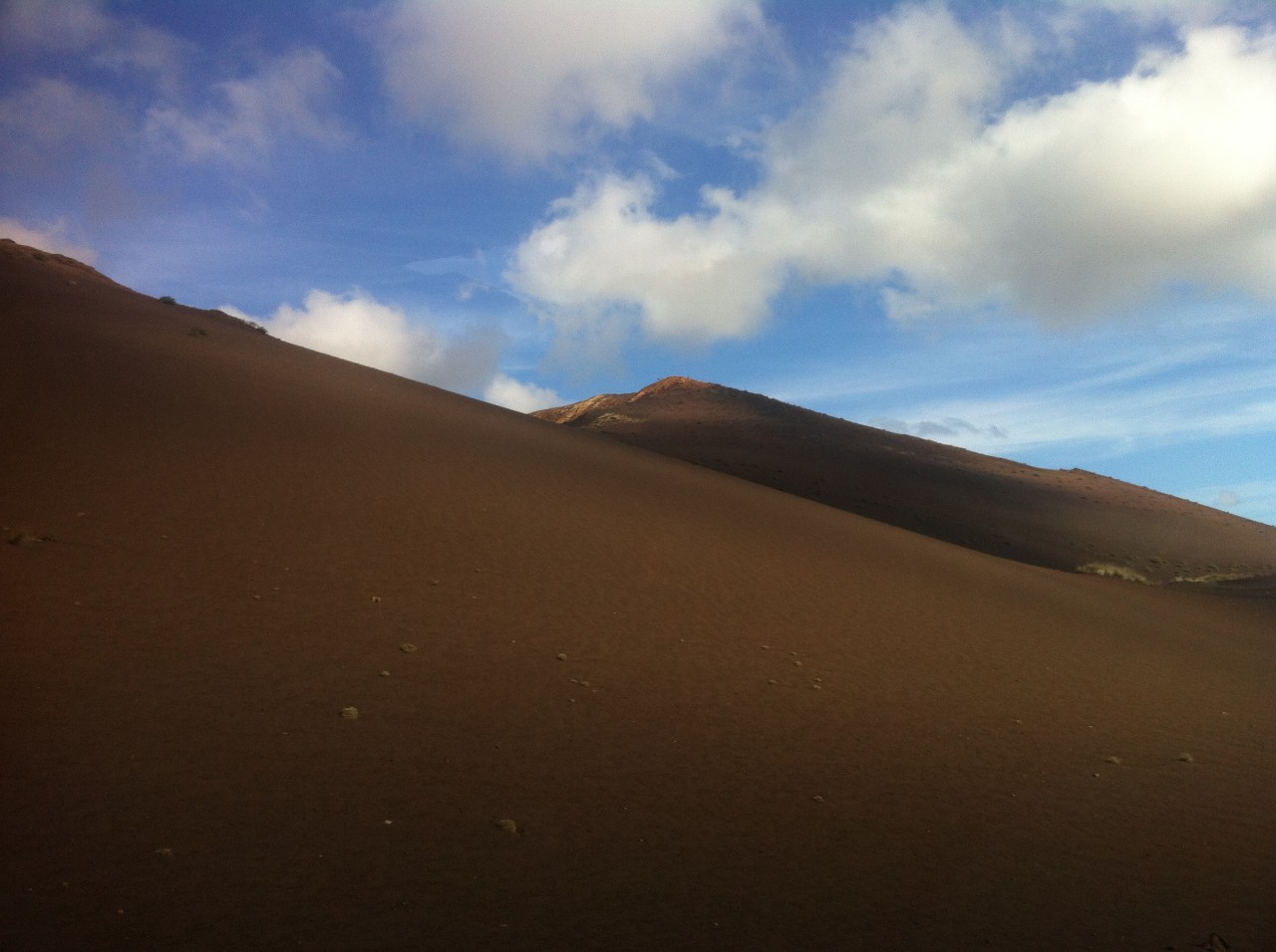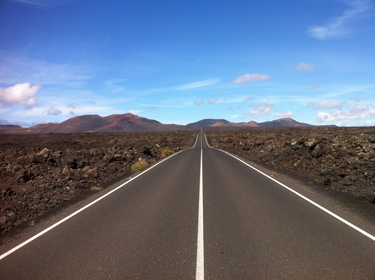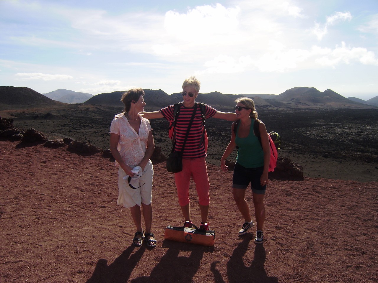 Odtud naše cesty směřovaly úplně na druhý konec ostrova. Pomocí dalších několika stopnutých automobilů jsme se vrátili zpět do Arrecife a odtamtud do města Yaiza přes Tías a Ugu. Odtud už ale po svých do Parque Nacional de Timanfaya. Po svých proto, že po nikdy nekončící cestě do tohoto národního parku, vážně skoro nic nejezdí. Ani pořádně nevíme, kam kráčíme, slunce nás opéká, není zde jediné místo, kde by se dalo schovat do chládku. Vody máme naštěstí dostatek. O národním parku víme pomalu jen to, že tam lidi jezdí. Před sebou však vidno jen kroucenou a nekonečnou cestu a v dálce Hory ohně - Montaňas del Fuego – náš cíl.