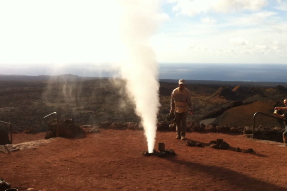 Po návratu k restauraci je nám ukázáno, že jen pár metrů pod zemí to stále žije, a tak když místní pracovník vhodí do jámy suché roští, okamžitě vzplane. Vzápětí další z borců nalije vodu do roury, vsazené do země, odkud je ihned vyplivnut vysoký gejzír. Vskutku hezká podívaná.
